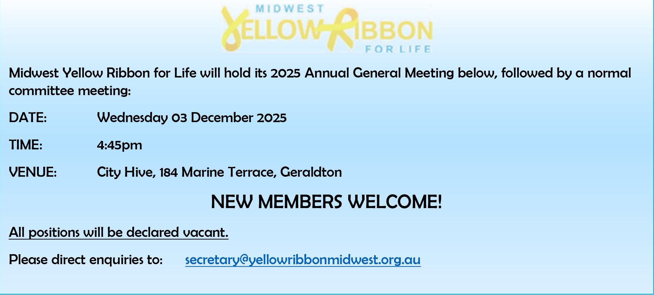 Midwest Yellow Ribbon for Life Inc. promotes mental wellness and prevention of suicide while enhancing life in our community through education, support, and linking to local support services